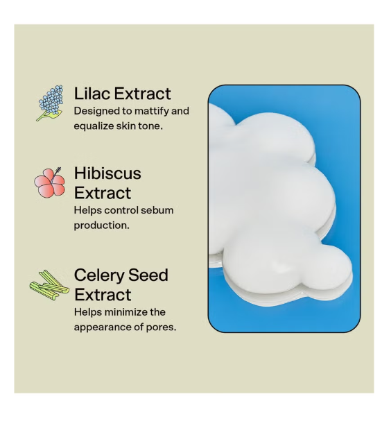 - Cloud Surf is enriched with hibiscus extract to help control sebum production while lilac extract mattifies and equalizes the tone of acne-prone skin. Celery seed extract makes this face cream a double-acting, gel based pore minimizer, keeping your skin smooth and prepped for makeup application!