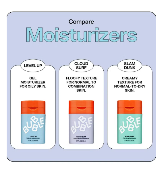 - This lightweight, hydrating face moisturizer quenches and rebalances normal-to-combo skin without feeling sticky or heavy. Cloud Surf's floofy perfection also helps to minimize the appearance of pores, rebalance oils on your skin, and leaves your complexion looking and feeling smooth, nourished, and oh-so-natural... even under makeup! Made for normal-to-combination and sensitive skin.