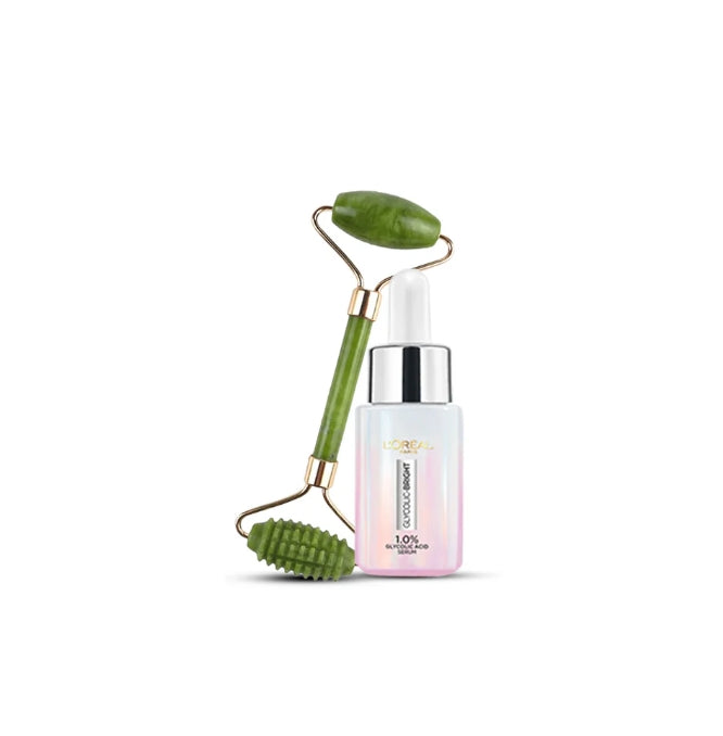 Bundle - Facial Beauty Jade Rollers for Face - Facial Massage Tool + L'Oreal Paris Glycolic Bright Instant Glowing Face Serums