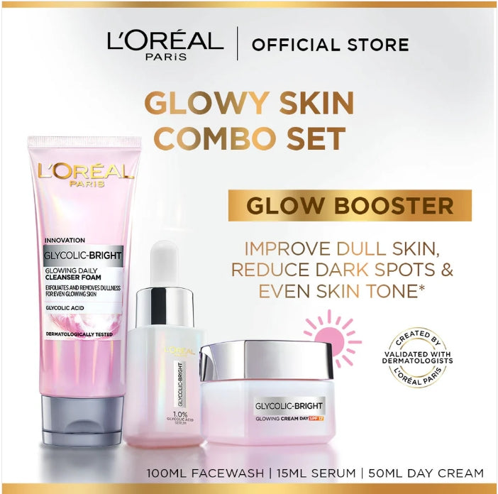 L’Oreal Skincare Laboratories developed Glycolic Bright Glowing Daily Cleanser Foam to gently exfoliate and deeply cleanse skin. With dense creamy foam, thoroughly clears impurities and make-up.Â