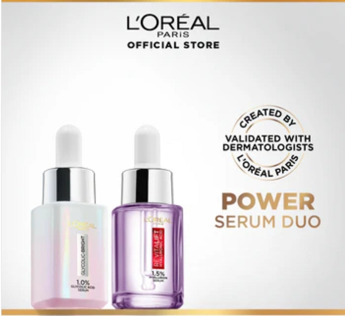 Bundle - L'Oreal Paris Glycolic Bright Instant Glowing Face Serum 15Ml + L'Oreal Paris Revitalift 1.5% Hyaluronic Acid Face Serum 15 Ml