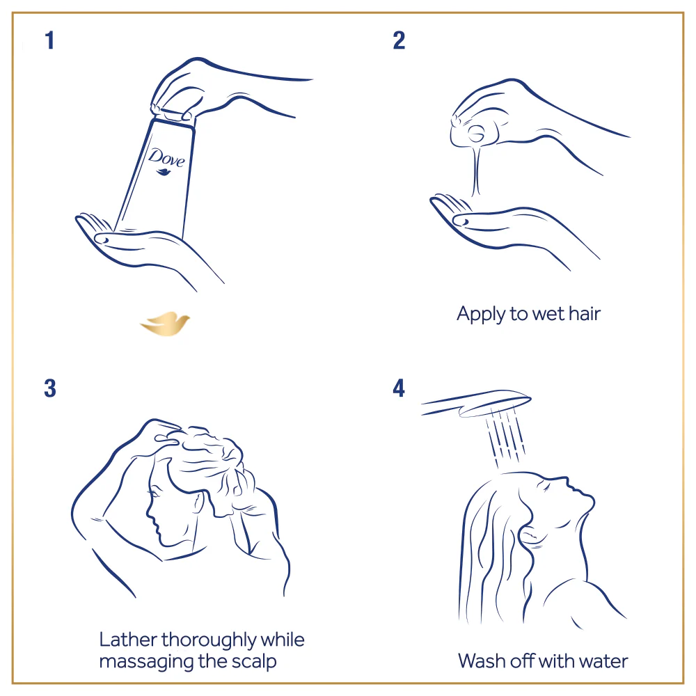 | Tired of the ever increasing strands of hair tangled and broken in your comb after brushing your hair? We know how that feels - daily hair damage can leave your hair prone to breakage. Let hair fall* be an issue of the past! Use the Hair Fall* Rescue Shampoo from Dove regularly to get thick and luscious looking hair as the Dove shampoo works to reduce hair fall by up to 98%*. We never want you to feel sad after a hair brush again and to always take bold risks with your hair to embrace your unique self without the fear of hair fall. Dove hair fall rescue shampoo moisturizes, strengthens and nourishes fragile hair from roots to tip through its unique formula that makes hair smoother to reduce hair fall* Dove wants you to have beautiful hair to make you feel confident and your hair looking as beautiful as ever, day after day. Say no to hair fall* worries and do more in life. Dove Hair Fall* Rescue lets you be stronger and bolder, every day. Just apply to wet hair, lather, and rinse. For best results, follow up with Dove Intense Repair Conditioner to experience comprehensive benefits. *Hair fall refers to hair breakage**Hairfall due to breakage, based on a lab test with Dove Hair Fall Rescue System vs non-conditioning shampoo About The Item: ● Strengthening Dove shampoo formulated to help prevent hair fall ● Reduces hair fall by up to 98 percent. ● Ideal For: Men & Women ● Deeply nourishes fragile and weak hair from root to tip ● Contains nutrilock actives; Leaves hair strong and beautiful; Gentle formula that's suitable for everyday use |