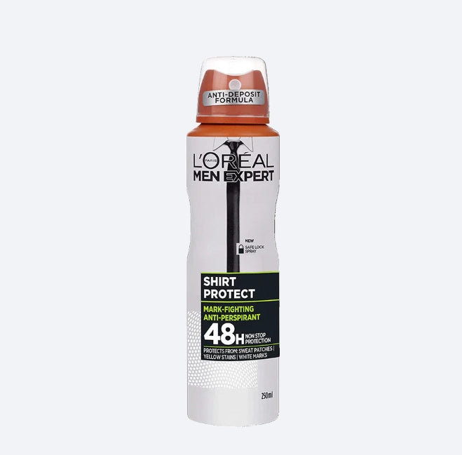 Stay fresh and confident for 48 hours with L'Oreal Men Expert 48H A/P Deodorant Spray Shirt Protect Refreshing 250Ml. This powerful spray protects your shirt from staining and refreshes your senses with a long-lasting, refreshing scent. Perfect for the active man on the go.