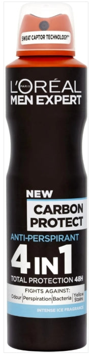 LOréal Men Expert Carbon Protect Deodorant provides 48 hours of total protection from sweat, odours, bacteria and yellow stains. This intense Ice deodorant spray gives 48 hours of extreme protection from not just sweat and odours but also from bacteria and yellow stains on your white clothes. It is long-lasting, has a cool, fresh fragrance and micro-captors that rapidly absorb wetness, for maximum protection, comfort and confidence.