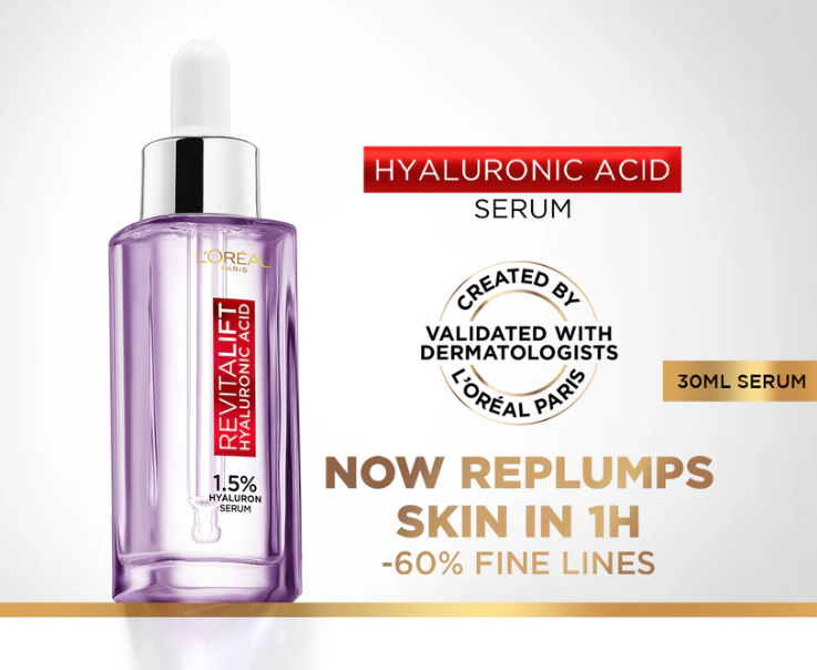 Formulated with LOréal Paris patented hyaluronic acid technology, the micro-hyaluron in the LOréal Paris Hyaluronic Acid serum is 50x* smaller than the standard hyaluron, penetrating deeper for instant plumpness, radiance and hydration.