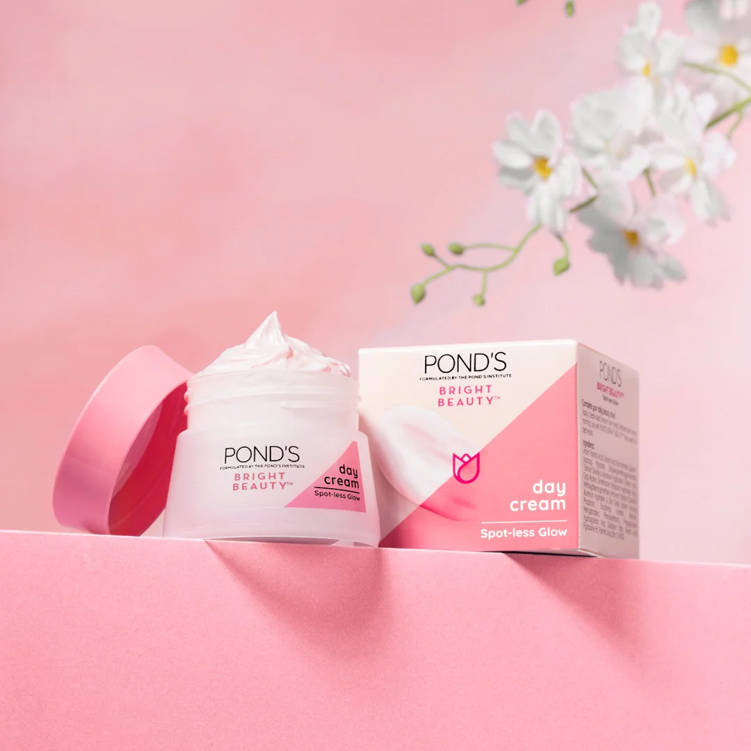 Glow all day with PONDS Bright Beauty Day Cream. This 50g cream is made with Vitamin B3 to provide a brighter complexion, soften skin, and reduce the appearance of dark spots. With a luxurious, lightweight feel, you’ll look your best from day to night.